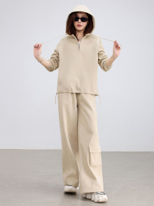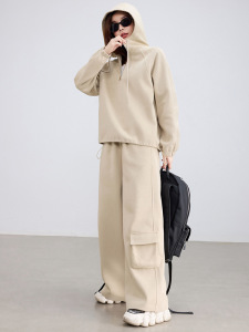潮牌帅气休闲连帽运动套装秋装新品纯棉挺阔宽松卫衣工装裤两件套