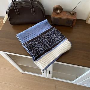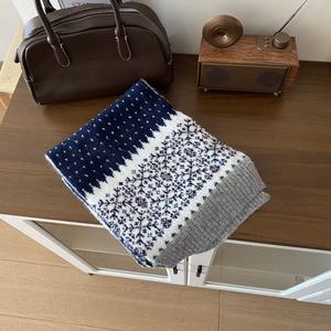费尔岛含羊毛针织围巾女冬季2025新款高级感加厚保暖红色毛线围脖