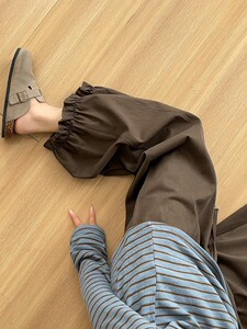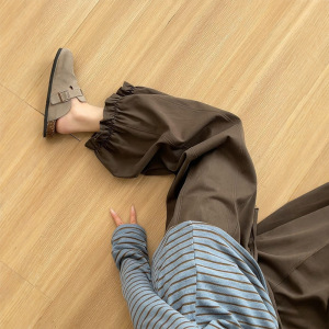 棕色阔腿花苞工装裤子女款大码秋季流行风格小个子今年流行梧桐裤