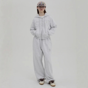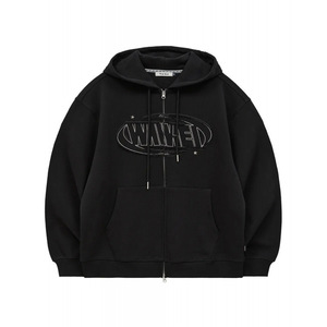 韩国小众潮牌waikei连帽卫衣女复古字母贴布拉链外套男金珉奎同款