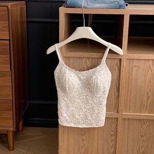 1718蝴蝶羽毛纱蕾丝保暖背心女士内搭外穿小胸聚拢带胸垫无袖吊带