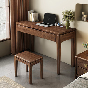 黑胡桃木实木梳妆台收纳书桌家用卧室中古风化妆桌大小户型化妆台