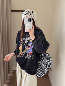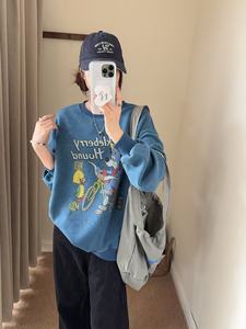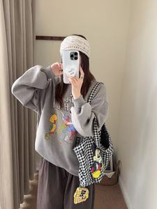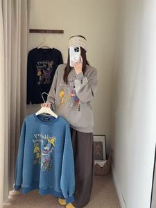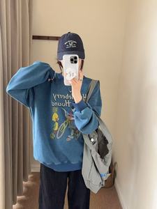 韩国东大门定制卡尔棉做旧复古卫衣女秋季新款宽松显瘦百搭上衣