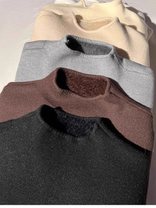 2025年冬季小立领加厚一体绒毛衣女内搭半高领软糯套头针织打底衫