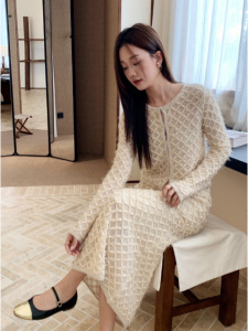 南油原创高端女装气质优雅风菱形纹理软糯羊毛针织开衫+半裙套装
