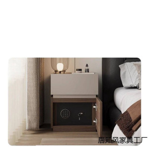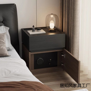 纯实木意式极简床头柜保险箱一体储物柜轻奢感带密码锁床边柜