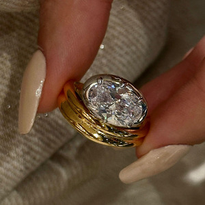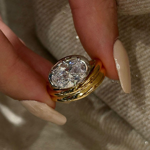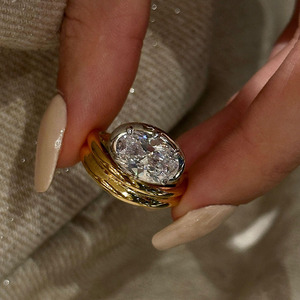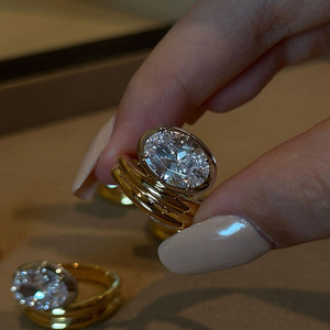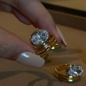 小红书爆款椭圆鸽子闪钻假式双层戒指轻奢高级食指戒指环一件代发