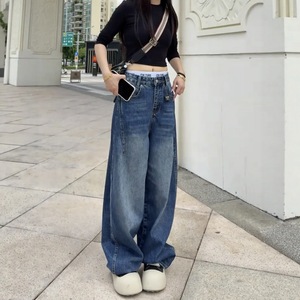 大码弯刀阔腿牛仔裤女秋冬2025新款梨型身材胖mm显瘦宽松直筒裤子