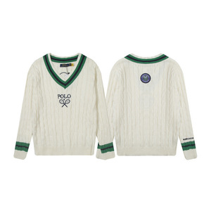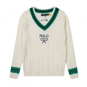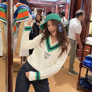 小马标拉夫温网联名郑秀晶同款麻花V领宽松针织衫男女款毛衣