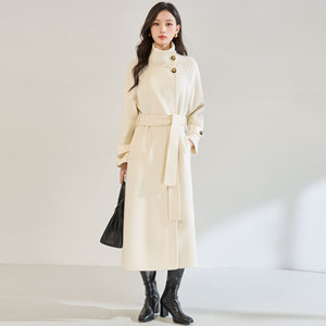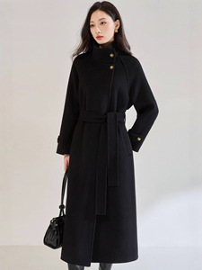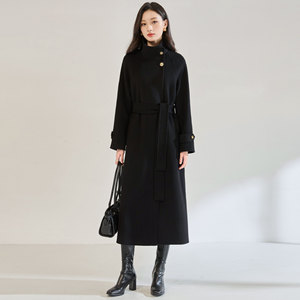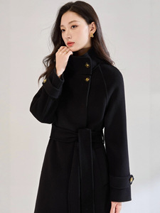 25冬季新款立领双面羊毛大衣女系带中长款收腰过膝毛呢外套25595
