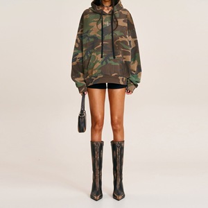 SMFK十字雕像阔身迷彩运动帽衫复古套头卫衣秋季新品