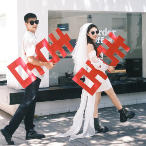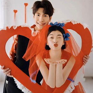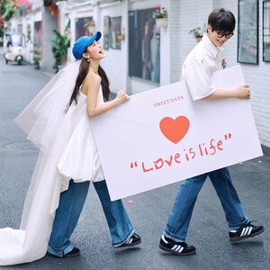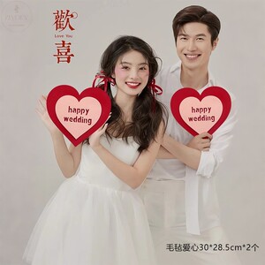 结婚订婚拍照道具创意毛毡大爱心手举牌婚礼婚纱拍摄喜字婚房装饰