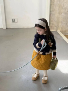 女童毛衣2025秋冬新款小童韩版洋气针织衫女宝宝夹棉裙子两件套