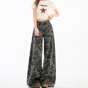 亚马逊跨境美式复古迷彩工装牛仔裤秋冬爆款直筒宽松垂感拖地长裤