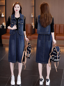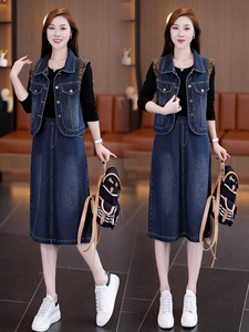 时尚气质套装裙女2025秋季新款洋气显瘦牛仔马甲连衣裙休闲两件套