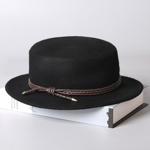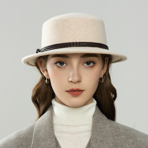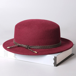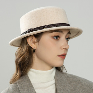 羊毛蝴蝶结装饰平顶礼帽女秋冬新款欧美法式毡帽英伦风女帽子批发