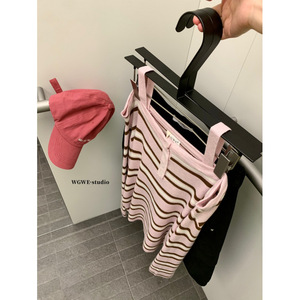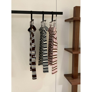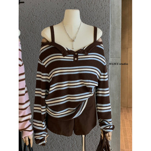 塞纳WGWE7012早秋装2025新款吊带一字领假两件长袖上衣
