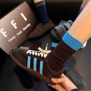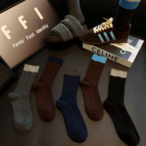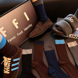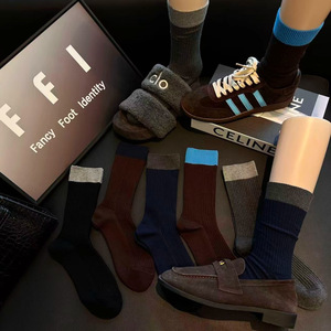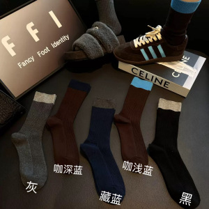 秋冬复古藏青色棕色双针中筒堆堆袜网红百搭不勒腿高级显贵女长袜