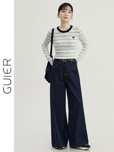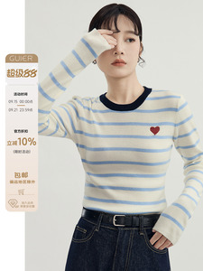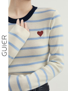 「GUIER」撞色条纹针织衫女春秋2025新款设计感爱心刺绣修身上衣