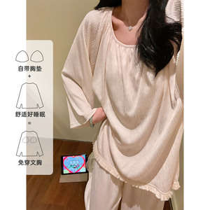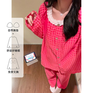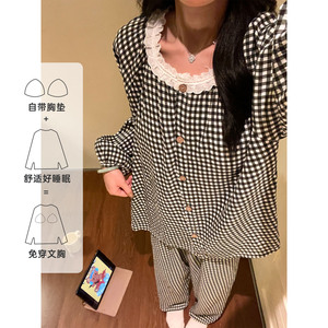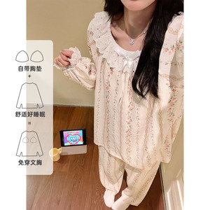 碎花睡衣女春秋款带胸垫森系田园风高级感长袖长裤2025新款家居服