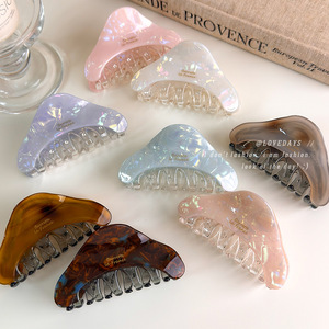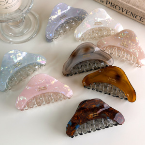 早秋复古拼色幻彩醋酸抓夹气质百搭后脑勺三角抓夹盘发中号鲨鱼夹
