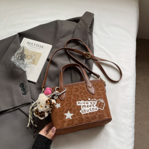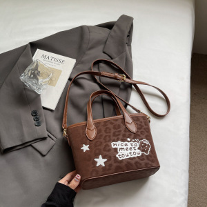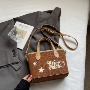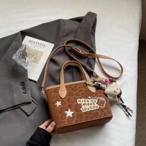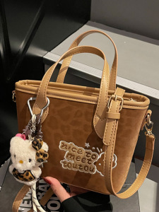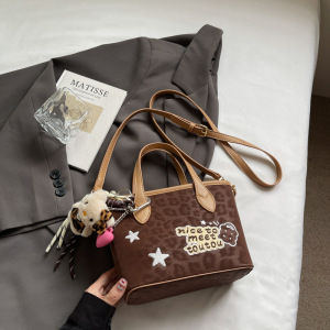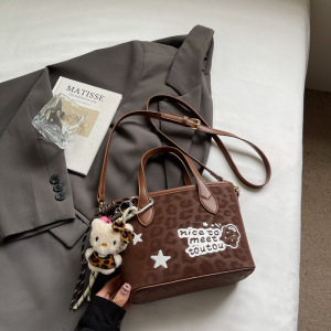 秋季小众复古豹纹枕头包2025新款时尚休闲单肩斜挎包手拎水桶包包
