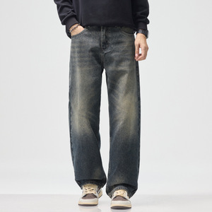 沐丘男装∣美式高街cleanfit直筒牛仔裤男士宽松复古做旧痞帅长裤