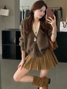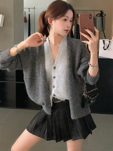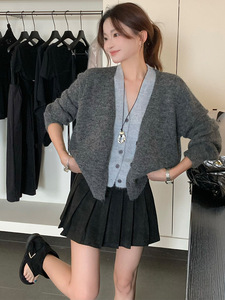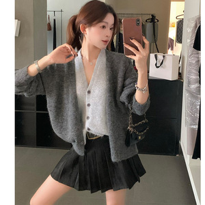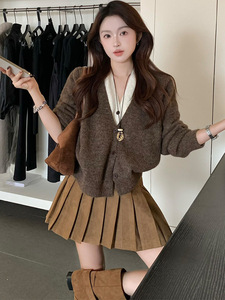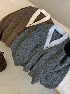 假两件撞色毛衣开衫女秋冬新款松弛感慵懒风宽松显瘦百搭针织上衣