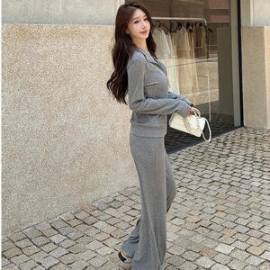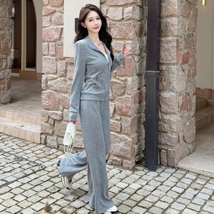 慵懒老钱风lulu休闲运动健身灰色条纹修身卫衣瑜伽阔腿裤两件套装