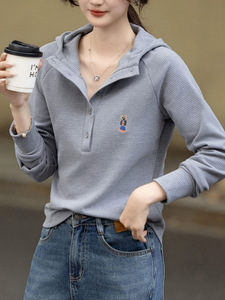 条纹密码2025秋季韩风时尚连帽刺绣宽松小个子弹力包容卫衣女上衣