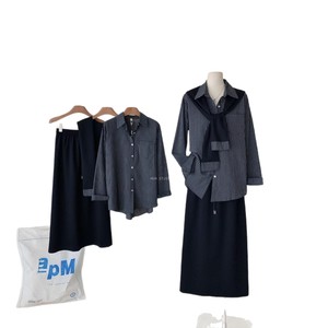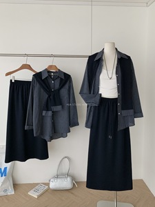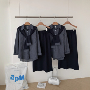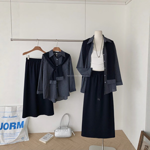 韩系学院风风格穿搭一整套女2025春秋季中长款半身裙披肩衬衫套装