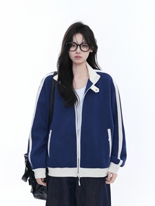 【坐吃山空】美式复古撞色立领夹克女设计感宽松中性风卫衣外套潮