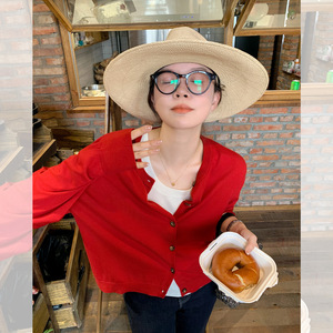莉贝琳sisy店主自留~黑标川久针织开衫全羊毛撞色气质圆领上衣女