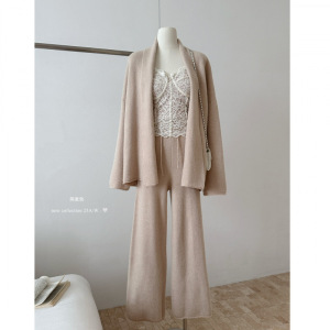 Row致简套装”秋冬气质针织开衫/长裤套装