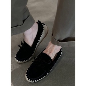 羊皮版~法式复古风舒适蝴蝶结休闲鞋平底圆头浅口单鞋懒人渔夫鞋
