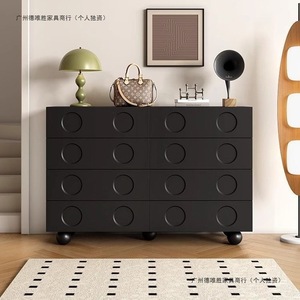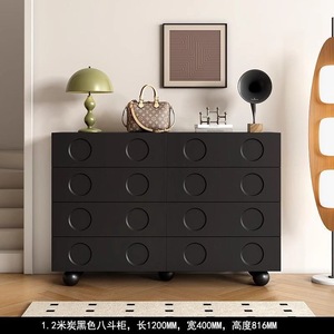 黑色复古八斗柜卧室床尾收纳储物柜斗柜客厅玄关柜电视沙发边柜