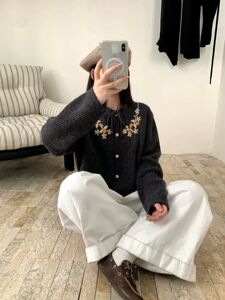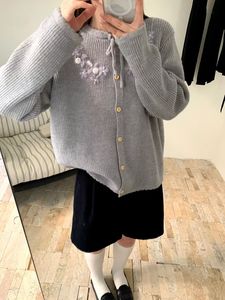 复古重工立体绣花针织开衫女2025秋冬新款韩版宽松温柔风毛衣外套