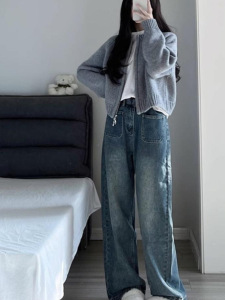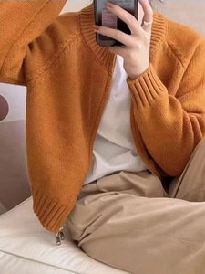 灰色短款毛衣外套女装早春秋2025年新款宽松拉链开衫长袖针织上衣