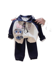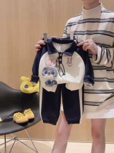 2025秋季新款女童POLO衫套装儿童韩版兔子警官卫衣卫裤翻领两件套