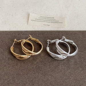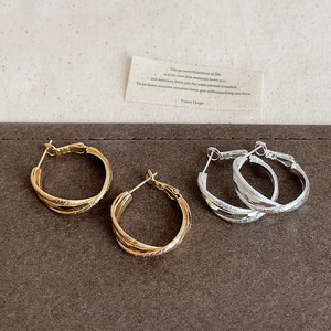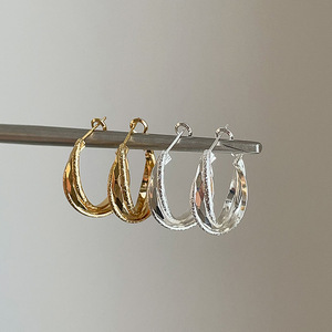 真金电镀银针圆形扭曲耳圈冷淡风简约时尚气质耳环轻奢高级感耳饰