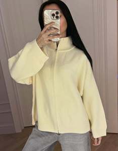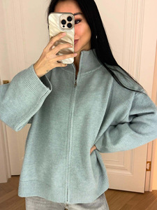 外贸韩版立领双拉链针织开衫女秋冬新款简约风宽松软糯毛衣外套潮