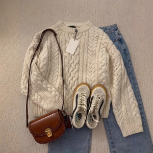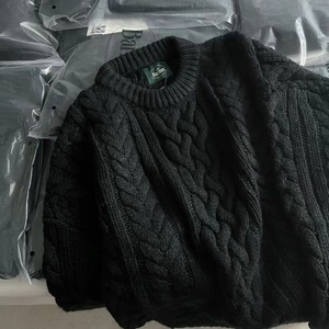 韩系复古黑色麻花毛衣女秋冬加厚宽松慵懒外穿显瘦纯色毛针织上衣