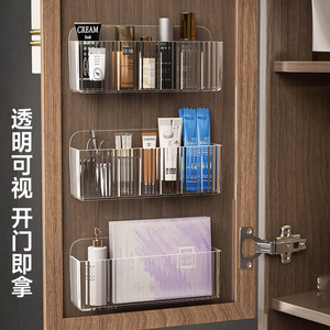 镜柜门收纳盒壁挂卫生间浴室柜门后透明分格化妆品面膜口红置物架