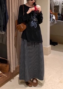 BRIVIN韩系深灰色条纹松紧腰半身裙女2025秋季气质显瘦慵懒风长裙