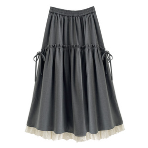 三寸藕【雾灰蝶影】法式少女风蕾丝拼接灰色半身裙女设计感a字裙