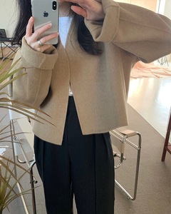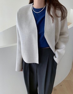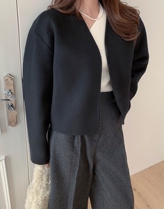 现现 极简主义 法式慵懒风气质v领宽松百搭短款毛呢外套 三色