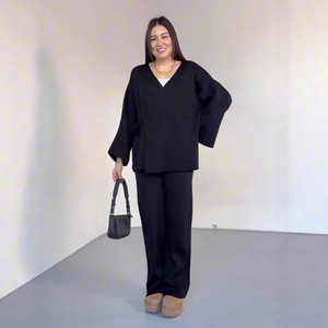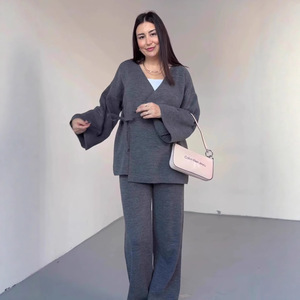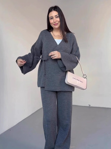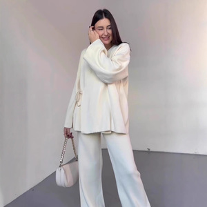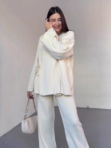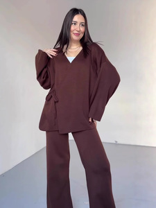 欧美亚马逊跨境外贸2025秋季新款长袖系带上衣宽松长裤休闲套装女