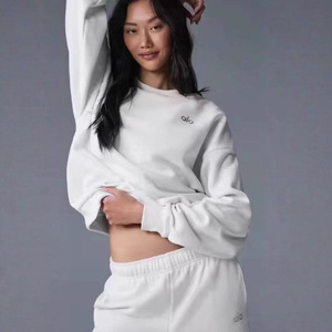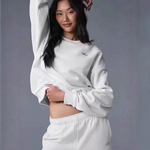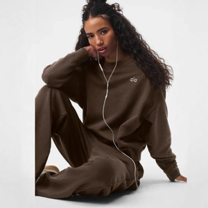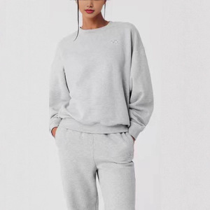 跨境欧美女士秋冬季保暖印花圆领套头长裤女装时尚休闲卫衣女套装