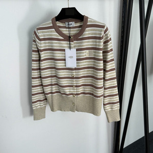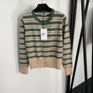 2025秋冬南油高端新款logo刺绣贴布拼色条纹圆领长袖针织开衫长袖