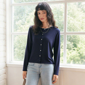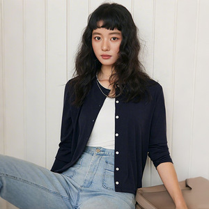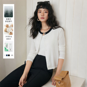 【莱赛尔天丝】圆领撞色开衫2025秋季时尚优雅气质休闲上衣A885